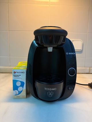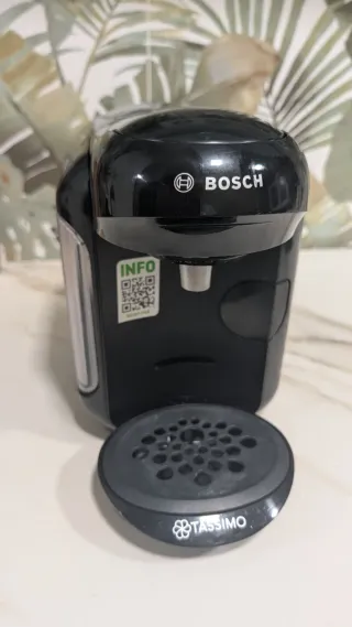 Cafetera Bosch Tassimo en perfecto estado. Las cápsulas se compran en Mercadona o similar. El recipiente de agua tiene algo de sarro que habría que quitar. Se retira por estación Benimaclet en Valencia o se hacen envíos en 24h.