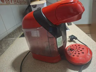 Cafetera Bosch Tassimo en color rojo, con muy poco uso. - Diseño compacto y moderno. - Bandeja extraíble para facilitar la limpieza. - Botón de encendido/apagado. - Indicador luminoso de funcionamiento.