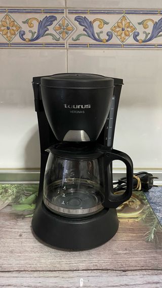 Cafetera de goteo Taurus Verona 6 en color negro. - Diseño compacto y elegante. - Jarra de cristal. - Indicador de nivel de agua. - Bastante usada pero funciona perfectamente.