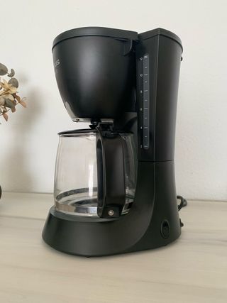 Cafetera de goteo en color negro. Cuenta con un diseño moderno y funcional. - Jarra de cristal (no es la original) - Indicador de nivel de agua.