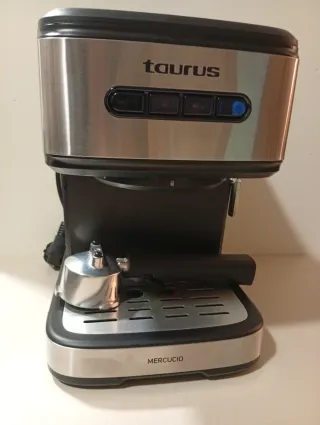 Cafetera express Taurus Mercucio de acero inoxidable. - Diseño moderno y compacto. - Acabado en acero inoxidable y negro. - Bandeja de goteo extraíble. Supernueva. Precio en tienda 110€