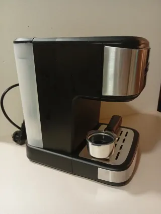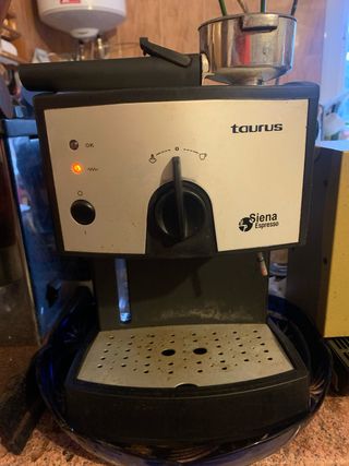 Cafetera Taurus Siena Espresso en color negro y plateado. Ideal para preparar café. - Diseño compacto. - Panel de control intuitivo. - Bandeja de goteo extraíble. Dos cacillos normal y doble tamaño profesional (cono la de los bares, no son como el resto de cafeteras domésticas). Cacillos sin presurizar (ideal baristas) y presurizador incluido que se puede poner y quitar. Sencilla pero con detalles profesionales. Funcionando. Vendo para comprar una automática.