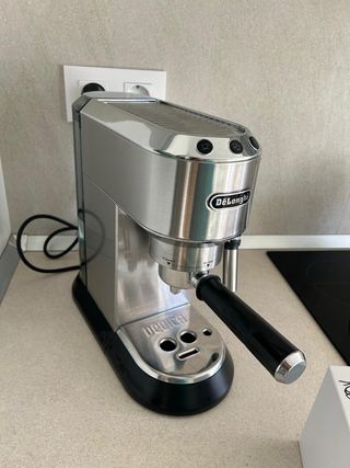 Cafetera espresso DeLonghi Dedica en acabado plateado y negro. Apenas usada, se vende por cambio a superautomatica. Incluye molinillo taurus.