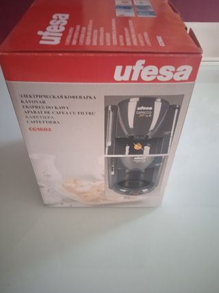 Cafetera marca UFESA, de jarra se cristal, sin estrenar. No tengo la caja de embalaje. El cable si viene con su embalaje.