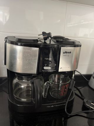 Cafetera Ufesa Dueto! con acabado en acero inoxidable y negro. Funciona perfectamente - Diseño moderno y funcional. - Ideal para café de filtro y espresso.