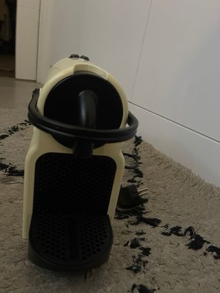 Cafetera Nescafé Inissia de color crema. - Diseño compacto y moderno. - Asa negra. - Bandeja recogegotas extraíble. - Junta de tanque de agua rota, pero no influye a la hora de hacer café.