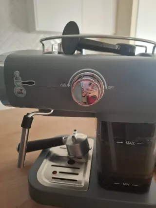 Cafetera en buen estado, la vendí porque me han regalado otra nueva. Perfecto para hacer tus cafés con tu café de elección, sin cápsulas, como en los bares, tiene para espumar/calentar leche. Recientemente descalcificada y limpiada.