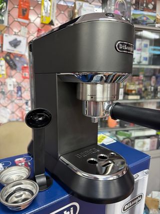 Cafetera DeLonghi Dedica en acabado de acero inoxidable. Diseñada para preparar espresso y cappuccino. - Diseño compacto y elegante. - Incluye portafiltros y accesorios. Exposición y revisada la rejilla tiene un poco arañazos se ve en la última foto Precio no negociable