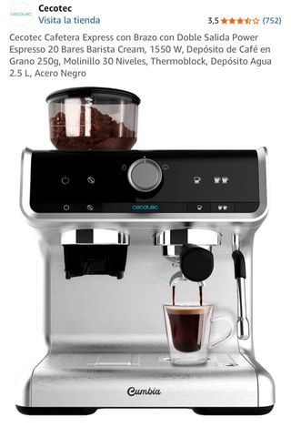 cafetera cecotec cumbia poco uso semiautomatica 1350w depósito 1,4L leche 500ml control táctil