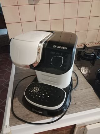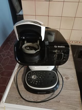 Cafetera Tassimo Bosch, en buen estado. Ideal para preparar tus bebidas favoritas de forma rápida y sencilla. - Marca: Bosch - Modelo: Tassimo - Color: Negro - Incluye bandeja antigoteo.