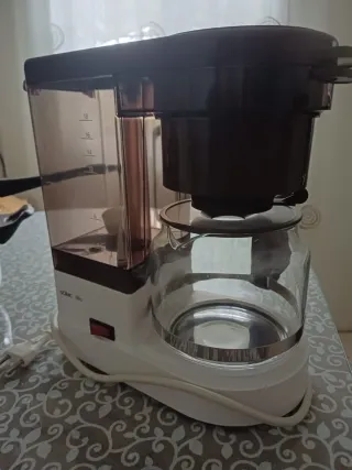 Cafetera eléctrica en buen estado. Es pequeña y fácil de usar. - Perfecta para una o dos tazas de café. - Diseño compacto y ligero. - Color negro.