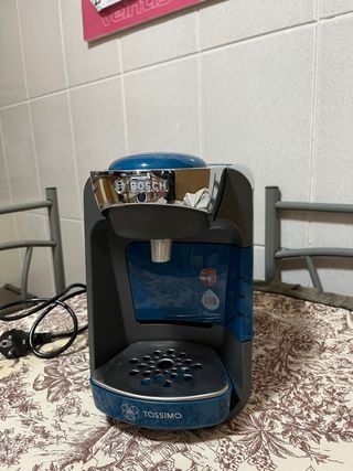 Cafetera de cápsulas Bosch Tassimo en color azul. - Diseño moderno y compacto. - Bandeja extraíble para facilitar la limpieza. - Indicador de nivel de agua.