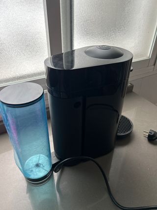 Cafetera Nespresso Krups en color negro. Para quien pueda arreglarla o para piezas. No funciona el botón de la taza de café, y el depósito pierde un poco de agua, aunque no siempre. - Diseño elegante y compacto. - Marca Krups y Nespresso.