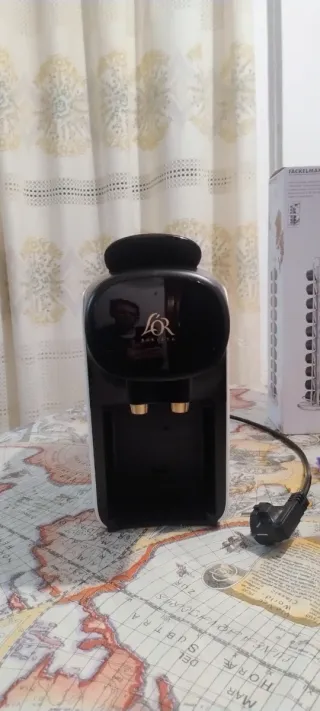 Cafetera de dosis, Nespresso modelo CitiZ, del fabricante Krups. Ha sido muy usada durante años, y solo tiene un problema, y es que, en ocasiones, el botón de seleccion de la taza grande no funciona y hay que pulsarlo continuamente para que salga el café; con el otro botón de taza pequeña no sucede (se acompaña fotografía de la cantidad de café de una taza pequeña).