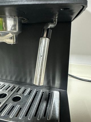 Brazo para cafetera Illy con mango negro y detalles metálicos. - Mango de diseño ergonómico. - Cuerpo de metal pulido.