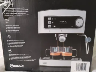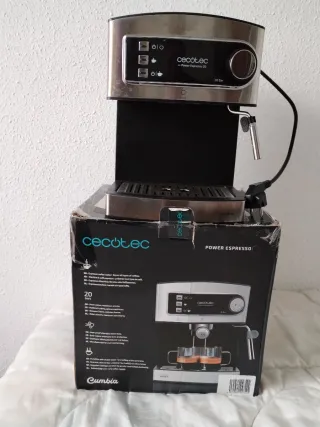 Cafetera express de la marca Cecotec, modelo Power Espresso 20. - Bomba de presión de 20 bares. - Vaporizador orientable con protección. - Brazo con doble salida para uno o dos cafés. - Bandeja recogegotas extraíble.