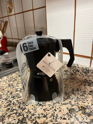 Cafetera italiana San Ignacio de la colección Moka. - Capacidad para 6 tazas. - Color negro. - Fabricada en aluminio.