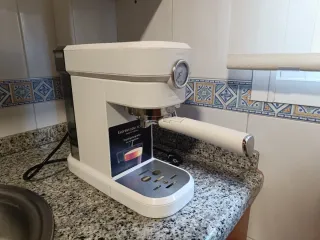 Cafetera De'Longhi Stilosa en color blanco. Diseñada para preparar deliciosos cafés. Usada solo una vez, se vende por que ya teníamos una cuando nos la regalaron. - Diseño compacto y elegante. - Panel de control intuitivo. - Vaporizador para espumar leche.