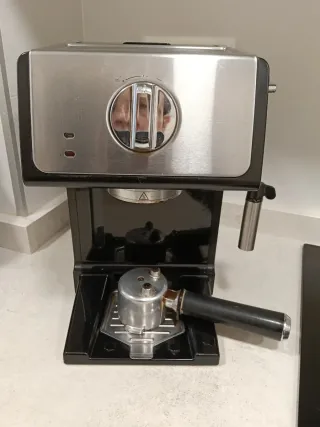 De'longhi - Cafetera de Bomba Tradicional para Espresso y Cappuccino, para Café Molido y Monodosis, 2 Tazas Simultáneamente, Depósito de Agua de 1.1l, 1100 W, ECP 33.21, Negro y Plata Usada Funciona perfectamente