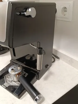 Cafetera de cápsulas L'Or Barista en color negro. El botón de máxima carga falla, el de carga pequeña y mediana van bien. De ahí el precio.