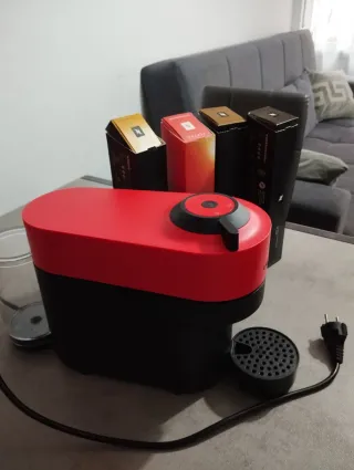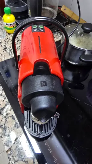 Cafetera Nespresso Vertuo de Krups en color rojo, casi nueva. ✅ La tecnología exclusiva que mezcla centrifugación e infusión. No usa presión tradicional, sino que la cápsula gira a alta velocidad, mezclando el café molido con agua caliente de forma perfecta. ✅ Extrae todo el sabor y el aroma del café sin amargor, creando una capa natural de crema suave y sedosa. ✅ Olvídate de variables, de errores, de cafés quemados o insípidos. Consistencia absoluta. ✅ Vertuo se destaca por su versatilidad en tazas más largas. ❌ Las cápsulas Nespresso VERTUO solo se consiguen en tiendas Nespresso.