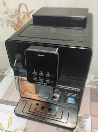 Cafetera de la marca Ceotec, modelo Cumbia. - Diseño moderno en color negro. - Panel de control digital. - Vaporizador para leche.Esta es una cafetera superautomática Cecotec Power Matic-ccino 6000 Serie Nera. Presión: Cuenta con una potente bomba de presión de 19 bares. Calentamiento: Utiliza un sistema de calentamiento rápido por Thermoblock. Funciones: Prepara espressos y americanos de café en grano recién molido con solo pulsar un botón. Personalización: Dispone de una pantalla LCD y permite personalizar y memorizar el café. Vaporizador: Incluye un vaporizador orientable para texturizar la leche a gusto del usuario.