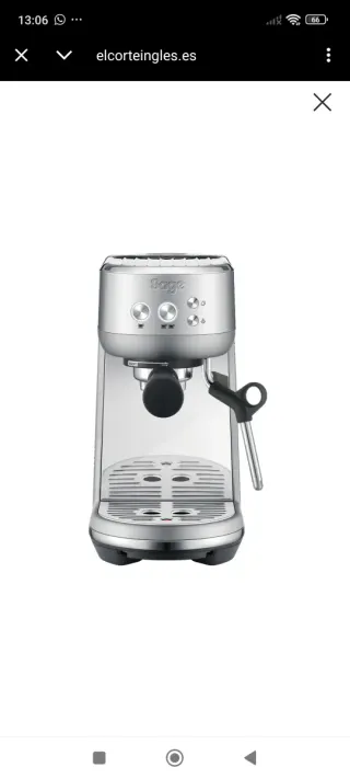 Cafetera Sage, ideal para piezas o repuestos. Su diseño es moderno y elegante. No se q le pasa sólo se q enciende no echa café por eso es su precio es para piezas o recambios o reparación - Acabado en color plateado. - Controles intuitivos en la parte superior.