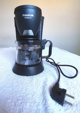 Cafetera eléctrica Taurus Verona 12. - Diseño moderno en color negro. - Jarra de cristal. - Capacidad para 12 tazas.