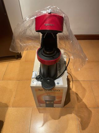 Vendo cafetera Nespresso Vertuo de color rojo, totalmente nueva, sin uso. Incluye caja original y todos los manuales/explicativos. 📌 Único detalle: el depósito de agua tiene una pequeña marca estética (ver fotos). No afecta en absoluto al funcionamiento. ✔️ Nunca utilizada ✔️ Sistema Vertuo (cápsulas originales Nespresso) ✔️ Perfecta para café largo y espresso ✔️ Ideal como regalo o para estrenar cafetera a mejor precio 📦 Se entrega con su embalaje original. 💬 Para más información o fotos, no dudes en contactarme.