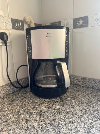 Cafetera de goteo Melitta LOOK en color negro y blanco. - Diseño moderno y compacto. - Jarra de cristal. - Indicador de nivel de agua.