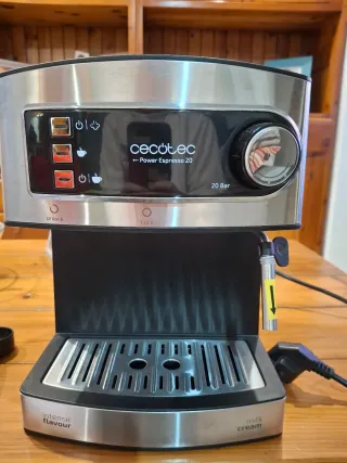 Cafetera de la marca Cecotec, con un diseño moderno y elegante. - Acabado en acero inoxidable. - Panel de control con botones. - Vaporizador para leche. Le falta lo que depura el café. Escucho ofertas Se hacen envíos
