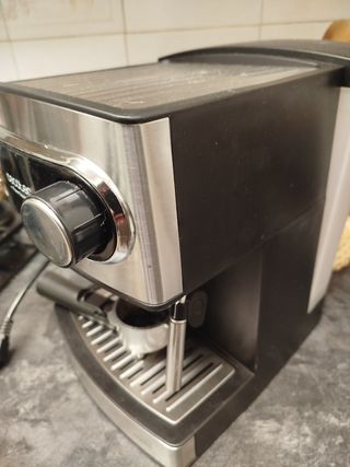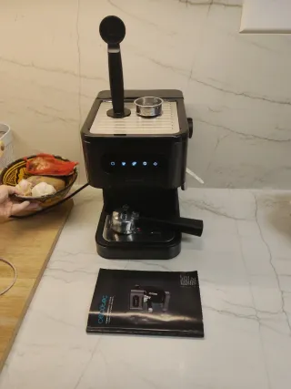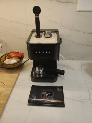 Estado: nueva, sin usar. Comprada hace unos 3 años pero nunca se llegó a utilizar (aún en su caja original). 🛠️ Funcionamiento: cafetera espresso semiautomática. Características principales: • Cafetera espresso para café molido • Sistema de vapor para espumar leche (ideal para cappuccino y latte) • Función de 1 o 2 cafés • Diseño elegante en negro y acero inoxidable • Bandeja recoge gotas extraíble • Fácil de usar y limpiar • Ideal para uso doméstico Perfecta si buscas una cafetera con buen diseño y prestaciones para disfrutar de café espresso en casa. 📍 Entrega en mano o envío por Wallapop
