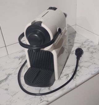 Cafetera Nespresso DeLonghi en perfecto estado. - Diseño compacto y elegante. - Color negro. - Asa integrada para facilitar el transporte. - Fácil de usar. De regalo un sobre de descalcificador para eliminar la cal cuando le toque una limpieza en profundidad.