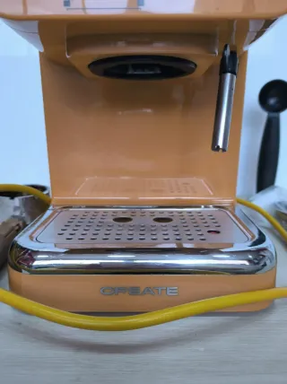 Cafetera express Thera Retro de Create. Tiene signos de desgaste (ver imágenes) y el espumador NO funciona. El café lo hace perfectamente. Incluye: 1x Cucharón dosificar 1x Filtro monodosis casi nuevo (1 semana de uso) 1x Filtro dos dosis nuevo a estrenar. Especificaciones técnicas en la última imagen.