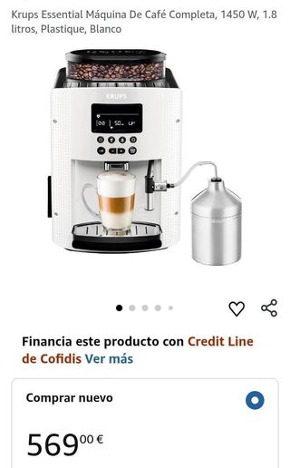 Capacidad1,8 Litros ColorBlanco Dimensiones del producto39f. x 51an. x 30al. centímetros Función especialProgramable Tipo de cafeteraCafetera de espresso El producto tiene un diseño compacto y está equipado con un recipiente para 260 g de granos de café y un tanque de agua de 1.7 l Presión: 15 bar Potencia: 1450 w Función de memoria La Krups Essential es una máquina de café completa que ofrece una potente caldera de 1450 W para una rápida preparación de café. Tiene una capacidad de 1.8 litros, lo que le permite preparar hasta 12 tazas de café a la vez. El cuerpo de la máquina está hecho de plástico resistente y viene en un elegante