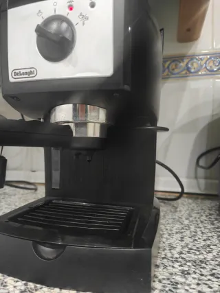 Cafetera automática de la marca Delonghi. Diseñada para preparar café de forma sencilla y rápida. - Color negro y plateado. - Panel de control con selector. - Asa para el portafiltro. Funciona perfectamente, funciona con café molido