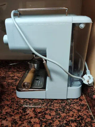 Cafetera de estilo retro en color menta. Incluye accesorios y en su caja original - Diseño vintage. - Manómetro. - Bandeja de goteo. - Incluye las 2 cazoletas/filtro La vendo porque la he sustuido por otra diferente.