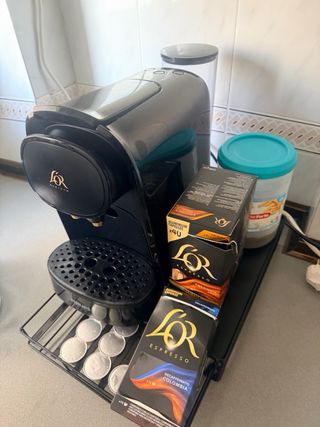 CAPSULAS NO INCLUIDAS Practicamente nueva 1-2 usos y no me gustó. Viene con su caja original y todos los accesorios Aun en garantia con El Corte Ingles.