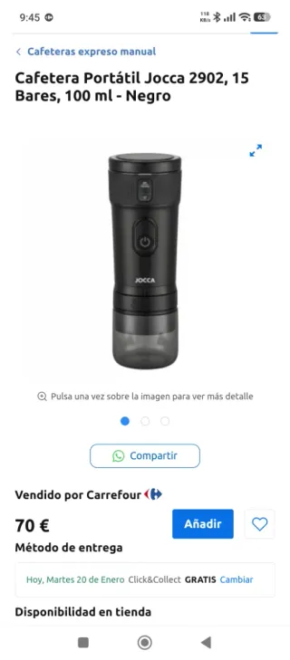 Cafetera Portátil JOCCA 15 bar