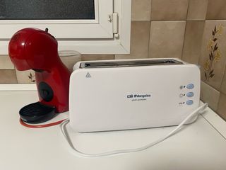 Se vende lote de electrodomésticos de cocina. - Tostadora blanca Orbegozo. - Cafetera roja Dolce Gusto.