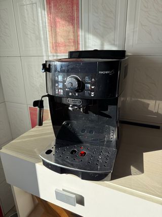 Cafetera súperautomática De’Longui Magnífica Start en color negro. Diseñada para preparar deliciosas bebidas de café con facilidad. - Panel de control intuitivo con iconos. - Depósito de leche integrado. - Bandeja de goteo extraíble. -Se vende con espumador y filtros. La vendo porque no la utilizo, está como nueva.