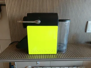 Cafetera Nespresso con un diseño moderno en color amarillo y negro. Ideal para preparar tu café favorito. - Depósito de agua transparente. - Bandeja recogegotas. - Acabado en amarillo vibrante.