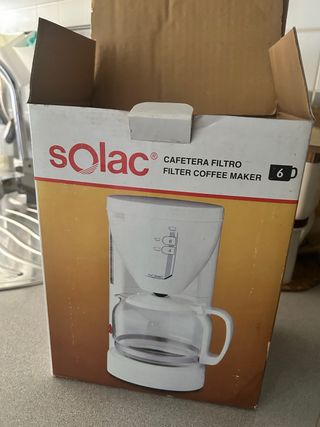Cafetera de filtro Solac con capacidad para 6 tazas. Ideal para preparar café de forma sencilla. - Diseño compacto y funcional. - Jarra de cristal resistente.