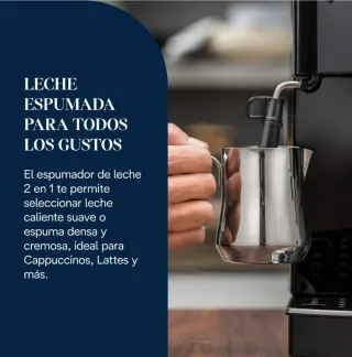 Cafetera Delonghi, lista para preparar tus cafés. Solamente esta estropeado la parte de calentar la leche. - Diseño moderno y compacto. - Acabado cromado y negro.