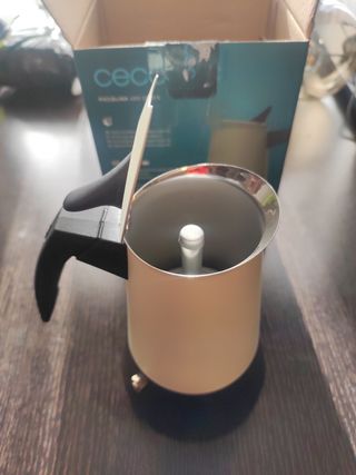 Cafetera italiana de la marca Cecotec, ideal para preparar café de forma tradicional. - Diseño moderno en color blanco y negro. - Fabricada en aluminio.