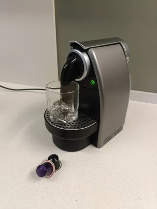 Cafetera Nespresso DeLonghi en buen estado. Es de color gris plata y tiene un diseño elegante. - Marca: Nespresso - Modelo: DeLonghi - Color: Gris plata