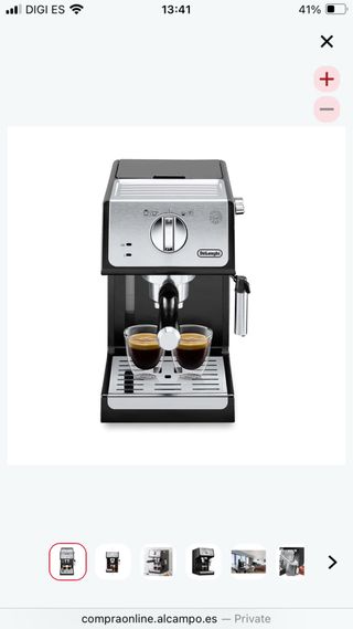 Cafetera DeLonghi en color blanco. Incluye accesorios. La cafetera está en buen estado, funciona correctamente, la mancha q se ve en la zona de arriba es que se me derramó un poco de descalificador ( tiene todas sus limpiezas y mantenimiento hechas ya que me gusta cuidar mucho mis cosas ) por eso el precio es un poco más bajo que la media de los anuncios, la cafetera NO ES NEGOCIABLE. El color es blanco roto, beige.... - Cafetera DeLonghi - Portafiltro - Filtros de café - Tamper