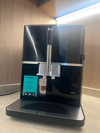 Cafetera superautomática Siemens EQ300 en color negro, molinillo cerámico,espumador de leche, función oneTouch, negro. - Diseño moderno y elegante. - Panel de control intuitivo. - Ideal para disfrutar de un café de calidad en casa.