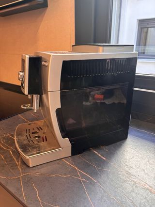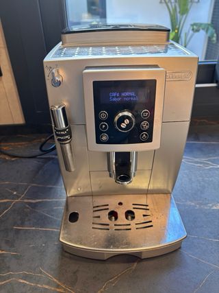 Cafetera automática DeLonghi Magnifica S Smart, ideal para preparar café en casa. Tiene menos de 3 años, originalmente me costó 400 - Diseño moderno en acero inoxidable y negro. - Panel de control intuitivo con botones. - Vaporizador para leche.
