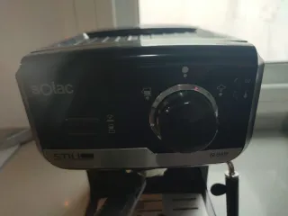 Cafetera de espresso Solac en color negro. - Diseño moderno y compacto. - Panel de control intuitivo. - Incluye portafiltros y accesorio para café molido.